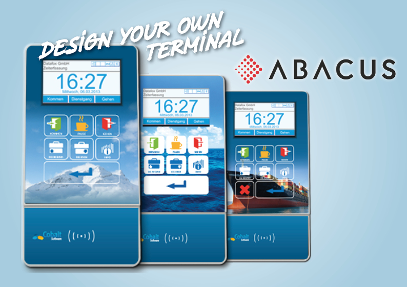 Abacus kann seit kurzem mit Zeiterfassungsterminals von Datafox verbunden werden. Die Erfassung von "Kommen", "Gehen", "Pause" und "Dienstgang" und die sofortige Übergabe dieser Zeitereignisse an Abacus ist bereits mit Standardfunktionen realisierbar. Die freie Gestaltbarkeit der Geräte und viele Konfigurations-möglichkeiten erlauben kundenindividuelle Implementierungen, die auch Zutrittskontrollszenarien einschließen.